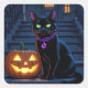 Black Cat and Jack-O-Lantern Halloween Square Sticker
