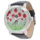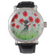 Whimsical Black Cat and Red Poppies Watch, fun watch designed especially for cat lovers.