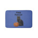 Black Cat and Pumpkin Happy Halloween Blue Bath Mat