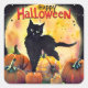 Black Cat and Pumpkins Square Sticker