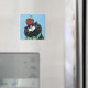 Whimsical cat festive fridge magnet. Sox the cat is out for a winter's stroll with his friend robin redbreast. Created from an original painting 2008 Lisa Marie Robinson