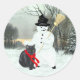 Black Cat and Snowman Classic Round Sticker