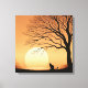 Black Cat and Tree Silhouette in the Sun Set Canv Canvas Print