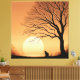 Extra Large (101.60cm x 101.60cm) Canvas Print. With a black cat sitting on the lake's bank facing the setting sun on a winter's evening with the silhouette of a tree in foreground. Perfect for decorating your home.