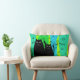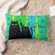 Black Cat Art Pillow, "Cat Mum", green and blue abstract colours, two black cats on the front and large black cat on the back in coordinating colours.