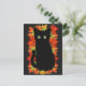 Black cat, Autumn leaves pattern, Halloween fun Postcard