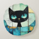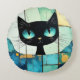 Black Cat Block art Round Cushion