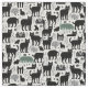 Black cat botanical white pattern modern boho fabric