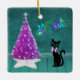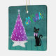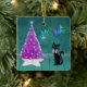 Black Cat Bow by Pink Tree Teal Merry Christmas Ceramic Ornament