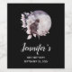 Birthday bottle labels with a watercolor painting of a black cat and a light purple and pink floral bouquet. Standing in front a a large full moon. Stylish and magical.