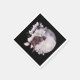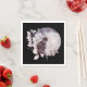 Paper napkins with a watercolor painting of a black cat and a light purple and pink floral bouquet. Standing in front a a large full moon. Stylish and magical.