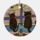 These two cute black cats have been sitting patiently on the windowsill for Santa to arrive. It is Christmas Eve and the snow is falling hard. The house is decked with holly and seasonal bells for the holidays. Then the cat's patience is rewarded as they spot Santa in his reindeer sleigh flying across the face or the shining full moon. This is a colourful, festive Christmas watercolor that will add a note of fun and brightness to your holiday decorations.