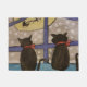 These two cute black cats have been sitting patiently on the windowsill for Santa to arrive. It is Christmas Eve and the snow is falling hard. The house is decked with holly and seasonal bells for the holidays. Then the cat's patience is rewarded as they spot Santa in his reindeer sleigh flying across the face or the shining full moon. This is a colorful, festive Christmas watercolor that will add a note of fun and brightness to your holiday decorations.