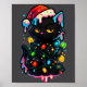 Black Cat Christmas Ice Cream Drip Santa Hat Cute Poster
