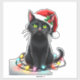 Black Cat Christmas Lights Santa Hat Funny Xmas Ca