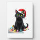 Black Cat Christmas Lights Santa Hat Funny Xmas Ca Plaque