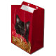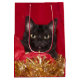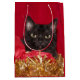 Black....actually black smoke but looks black.....kitty cat all surrounded in red and gold Christmas decorations cat lovers Christmas holiday gift bag