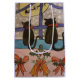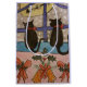 These two cute black cats have been sitting patiently on the windowsill for Santa to arrive. It is Christmas Eve and the snow is falling hard. The house is decked with holly and seasonal bells for the holidays. Then the cat's patience is rewarded as they spot Santa in his reindeer sleigh flying across the face or the shining full moon. This is a colourful, festive Christmas watercolor that will add a note of fun and brightness to your holiday decorations.