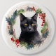 Black Cat Christmas Wreath Festive Kitten 6 Cm Round Badge