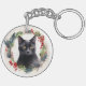 Black Cat Christmas Wreath Festive Kitten Key Ring