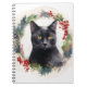 Black Cat Christmas Wreath Festive Kitten Notebook