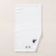 Bath towel set, consisting of a face cloth, hand towel and bath towel with a black cat design. You can customise this bath towel set with any text of your choice. Should you require any help with customising then contact us through the message link on this page. Black cat design bathroom towel set