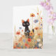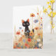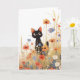 This enchanting greeting card features an adorable black cat with wide, curious eyes, nestled among a vibrant field of wildflowers in full bloom. The whimsical illustration captures a joyful moment of nature, with the delicate flowers in shades of red, blue, and orange, creating a beautiful contrast with the sleek black fur of the kitten. Perfect for any occasion, this card is ideal for cat lovers, nature enthusiasts, or anyone who appreciates charming, nature-inspired art. Whether for birthdays, thank-you notes, or simply to share a smile, this card adds a delightful touch to any sentiment.