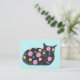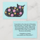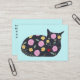 Painting of a black cat laying, decorated with flowers and plants that are listed as safe for cats to eat, are printed on business cards. The plants include Gerber daisy, nasturtium, cereal grass, and catnip, and they are printed on the back. Thank you for shopping CherylsArt on Zazzle.