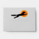 A custom return address Halloween A6 envelope with a magical black cat flying across an orange moon on the back flap.