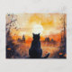 Black Cat Full Moon Leaves Country Halloween Holiday Postcard