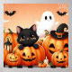 Black Cat, Ghost and Jack-O-Lanterns Halloween Poster