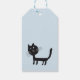 Happy black cat drawing custom gift tag for kids birthdays and celebrations.