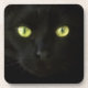 Custom cork coasters set for cat lovers featuring a close-up portrait of a beautiful black cat with mesmerising green eyes. A great accessory for your Halloween table!