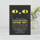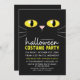 Cool Halloween costume party invitation with an illustration of a cat face, with big yellow eyes, a cute pink nose, and white whiskers.