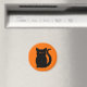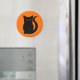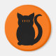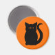 Adorable round magnet for Halloween or any day with a black cat silhouette on an orange background. Cute and fun decoration for the fridge.