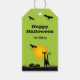 Bats in the sky fly above a green eyed black cat and leering jack o' lantern on these party favour gift tags. MATCHING items in our store.