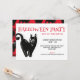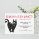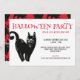 Black Cat Halloween party invitation featuring a black cat pattern on a red background on the back of the card. Customise with your details, change the text colour or leave as shown here to create your very own fun invitation. Spread the word about your spooky halloween bash! Please browse the Halloween Invitation Collection for more designs.