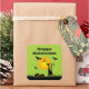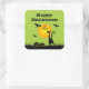 Bats in the sky fly above a green-eyed black cat and leering jack o' lantern on these Halloween party square stickers. MATCHING items in our store.