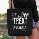 This custom Halloween trick-or-treat bag features a cute black cat design in black and white, blending simple typography with a whimsical Halloween vibe. Perfect for kids and little witches, it’s both fun and practical for collecting treats on spooky night adventures. A charming, reusable trick-or-treat bag that adds a touch of playful magic to your Halloween celebrations. 🐈‍⬛🎃✨