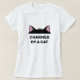 Black Cat head and personalised funny cat quote: Charmed by a cat T-Shirt. Text can be personalised. Ideal for cat lovers.