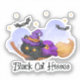 This playful Halloween sticker features a black cat wearing a purple witch hat and cape, lounging sassily on a witch’s broomstick, paired with the fun and feisty phrase “Black Cat Hisses.” With a mix of spooky charm and attitude, this design is perfect for cat lovers, Halloween enthusiasts, and anyone with a mischievous streak.