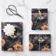 Wrapping paper sheets with a cute illustration. A black long-haired cat wearing a black witch's hat. It's ears poking out. Surrounded by orange and brown autumn flowers. Awesome design for witch themed items and Halloween.
