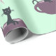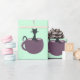 Cute design of a black cat sitting in a cup. Pale green. Art and design by Mira