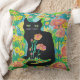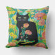 Black Cat in Flowers Throw Pillow Home Decor
