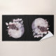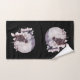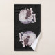 Towel set with a watercolor painting of a black cat and a light purple and pink floral bouquet. Standing in front a a large full moon. Stylish and magical.