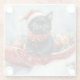 Black Cat in Sledge Let it Snow Christmas Glass Coaster