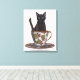 Black Cat in Teacup by FabFunky. Features a cat sitting in a beautiful floral teacup. | 191544D