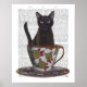 Black Cat in Teacup by FabFunky. Features a cat sitting in a beautiful floral teacup. | 191389D
