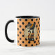 Add a Halloween mug to your collection with this cute and colourful mug featuring a black cat in witch hat with Happy Halloween text. Matching black polka dots over an orange background complete the design. The cute cat graphic is original artwork©delightful-doodles.com.