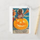 Black Cat is Sitting on Big Bright Pumpkin, Funny Postcard